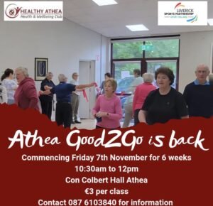 Good2Go continues this Friday 1st December at 10:30am to 12pm at Con Colbert Hall €3 per class contact 087 6103840 for information.
