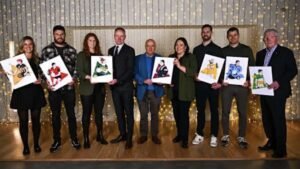 Attendees, from left, Kilkenny’s Grace Walsh, Down’s Marty Clarke, Kerry’s Louise Ní Mhuircheartaigh, GAA Director of Communications Alan Milton, Galway’s Cyril Farrell, Ard Stiúrthóir TG4 Deirdre Ní Choistín, Antrim’s Neil McManus, Dublin’s Kevin McManamon and Offaly’s Pádraig Horan at the launch of TG4’s award-winning Laochra Gael series at the Light House Cinema in Dublin. The biography series returns with eight new legends of Gaelic Games profiled for Season 24, with the first episode airing on January 22nd.