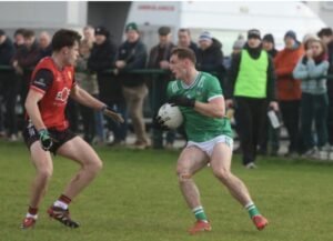 The Mourne side could have been futher ahead had Barry O’Hagan’s fisted effort not been disallowed for dropping directly into the net and Limerick took inspiration from that escape to draw a foul for Naughton to send over.