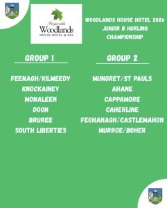 Last Tuesday evening the Woodlands House Hotel, Limerick GAA Junior B Hurling Club Championship Draw took place, have a look at the Junior B Hurling Group 1 & 2 draws that took place