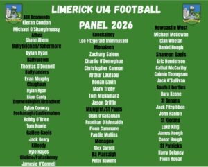 Limerick U14 Football Manager Tony Trehy and his selectors has released their 2026 Panel, All in Limerick GAA Football would like to wish all involved with the U14 football panel the very best for the year.