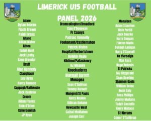 Eugene O’Connell manger of the Limerick U15 Football team and his selectors has just released their 2026 Panel, All in Limerick GAA would like to wish all involved with the Under 15s the very best for the year.