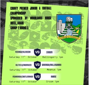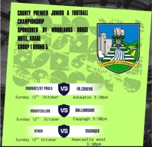 Take a look at this Weekend the final round games of the Woodlands House Hotel Adare, Premier Junior A Football Championship with Group 1 talking place on Sunday & Group 2 on Saturday.