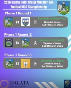 The Dalata Hotel Group GAA Under 20 Munster Football Championship will kickstart the Munster GAA Inter-County Championship season with Phase 1 games taking place on the last three Saturday’s in March (14th, 21st, 28th). The defending Munster Minor Football champions Kerry will play their opening game away to the 2nd place Phase 1 team on Thursday April 9th. The Munster Under 20 Football Final will take place on Thursday April 30th.